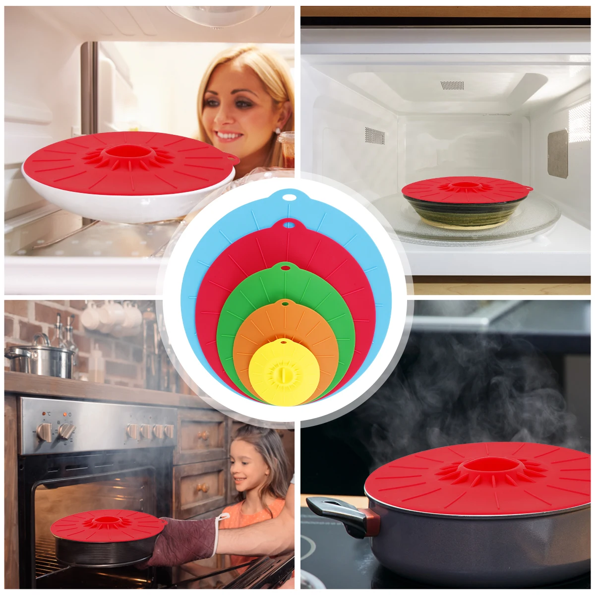 Simplify your kitchen routine with this versatile silicone suction lids set designed for convenience and efficiency. This 5-piece set includes multiple sizes ranging from 4 to 12 inches, making it easy to cover bowls, cups, pots, and containers of various sizes. Made from high-quality, food-grade silicone, these lids are heat resistant and safe for use in the microwave. The strong suction design creates a secure seal to help prevent spills, splatters, and leaks during heating or storage. Ideal as a microwave splatter cover, they keep your appliance clean while maintaining food moisture. The reusable design offers an eco-friendly alternative to plastic wrap and disposable covers. Flexible and durable, the lids easily adapt to different shapes and maintain their form over time. Easy to use and remove, they provide a convenient solution for everyday food storage and reheating. Safe for use in the refrigerator and dishwasher, they support a wide range of kitchen tasks. Lightweight and compact, they are easy to store when not in use. Perfect for meal prep, leftovers, and daily cooking needs, they enhance kitchen organization. Designed for both practicality and durability, these lids help reduce waste while improving efficiency. This silicone suction lids set is an essential addition to any modern kitchen.