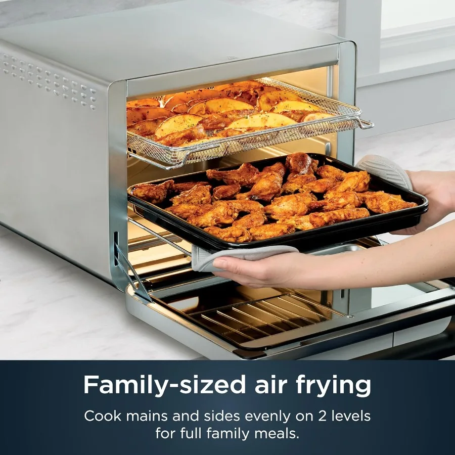 Upgrade your kitchen with this powerful smart oven XL designed to handle a wide range of cooking tasks with ease. Featuring a high-performance 1800W heating system, it delivers fast and even cooking results every time. This multifunctional appliance combines air frying, toasting, baking, roasting, and reheating in one convenient unit. Its spacious interior is large enough to fit a 12lb turkey, bake up to 20 cookies, or cook a full-size pizza, making it ideal for families and gatherings. The advanced air frying function allows you to enjoy crispy and delicious meals with less oil for healthier cooking. Built with durable stainless steel, it offers both longevity and a sleek, modern appearance. The intuitive controls make it easy to select cooking modes and adjust settings for perfect results. Designed for versatility, it handles everything from quick snacks to full meals effortlessly. The even heat distribution ensures consistent cooking across all dishes. Its countertop design saves space while providing maximum functionality. Easy to clean and maintain, it simplifies your daily cooking routine. Whether you’re baking, roasting, or air frying, this oven adapts to your needs. Perfect for busy households, it enhances convenience and efficiency in the kitchen. This smart oven XL is an essential appliance for anyone looking to elevate their cooking experience.